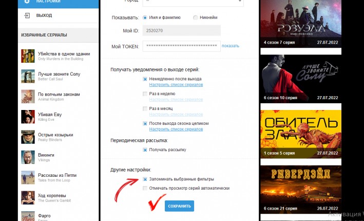 - Списком. Отображает даты выхода следующих серий всех сериалов.
