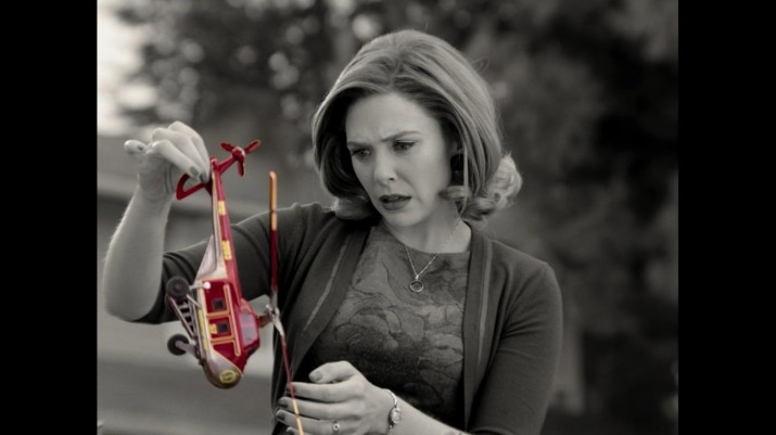 Впрочем, на первом месте у «Ванды и Вижена» — все равно радость от воссоединения с любимыми героями. Этим воодушевлением пропитан каждый кадр и, чувствуется, заражен каждый участник съемочного процесса. Совершенно по-новому перед зрителем раскрылась Элизабет Олсен, с удовольствием прошедшая лагерь подготовки к игре в ситкоме, где ее учили правильно говорить, двигаться и принимать вычурные позы, поскольку комедия в 50-60-е была больше пластической, чем языковой. Пол Беттани тут просто уморителен — этакий гибрид из Дика Ван Дайка, Хью Лори и Тони Старка. Настоящее удовольствие от нового профессионального вызова получили буквально все департаменты — художники по костюмам и декорациям, мэйкаперы, операторы и асы по спецэффектам. Пока первые создавали аутентичные каждой эпохе платья и красили Пола Беттани в синий цвет, который эффектнее смотрится в черно-белой палитре, вторые думали, как органичнее поселить магию в мир ситкома.